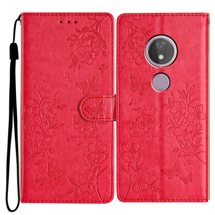 Funda de Cuero para Motorola Moto G7 Power con Mariposas y Flores (Rojo)