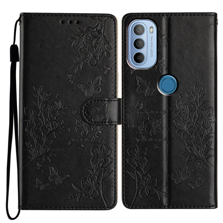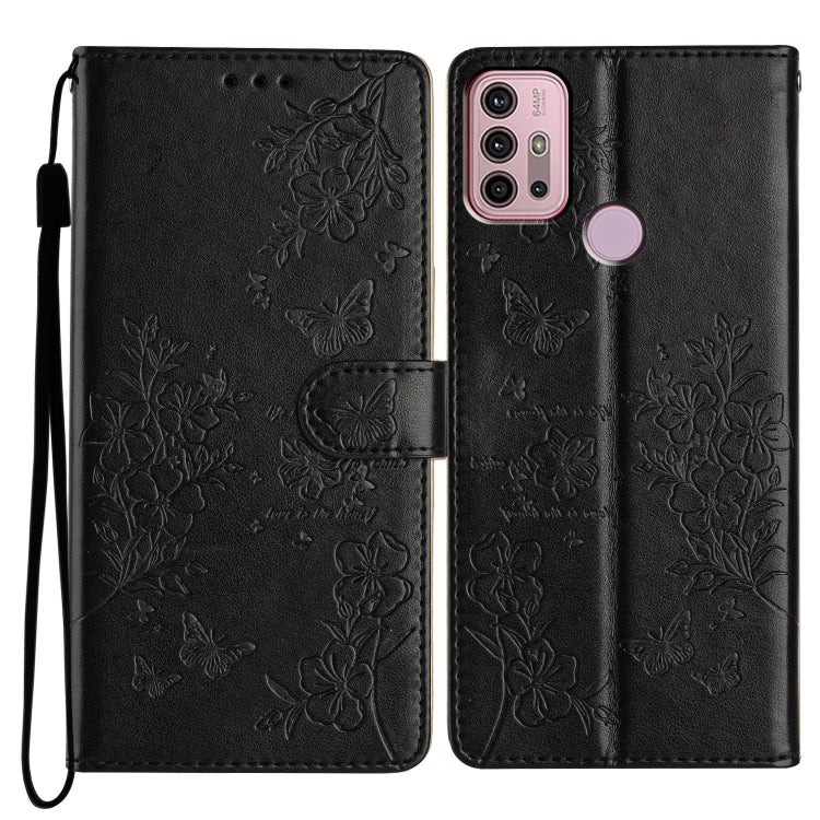 Funda de Cuero para Motorola Moto G30 con Mariposas y Flores (Negro)