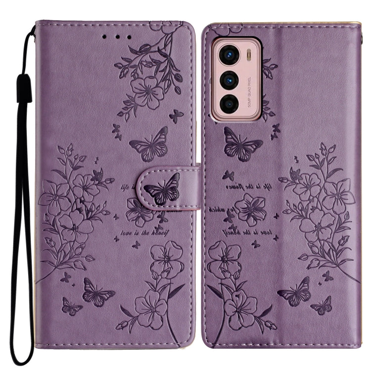 Funda de Cuero para Motorola Moto G62 5G con Mariposas y Flores (PĂșrpura)