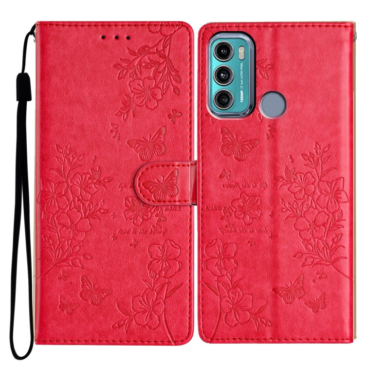 Funda de Cuero para Motorola Moto G Power 5G con Diseño de Mariposas y Flores (Rojo)