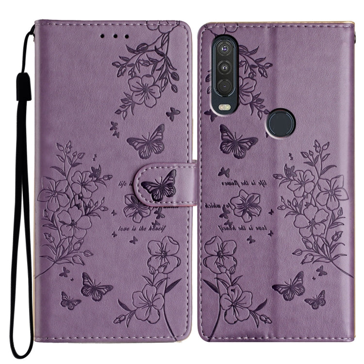 Funda de Cuero para Motorola Moto E20 / E30 con Mariposas y Flores (PĂșrpura)