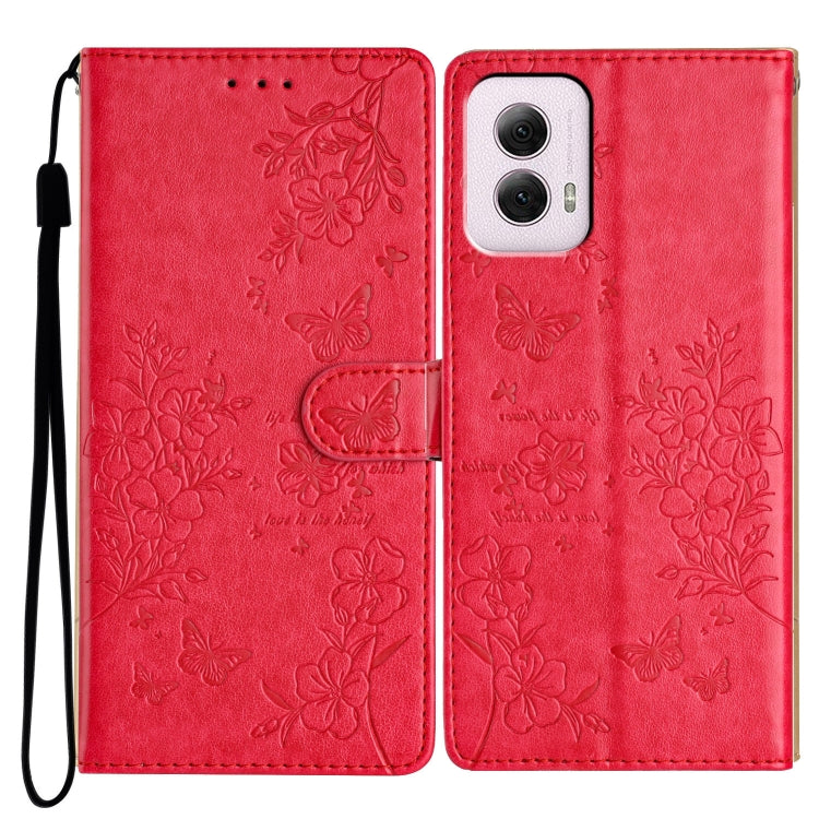 Funda de Cuero para Motorola Moto G53 5G con Mariposas y Flores (Rojo)