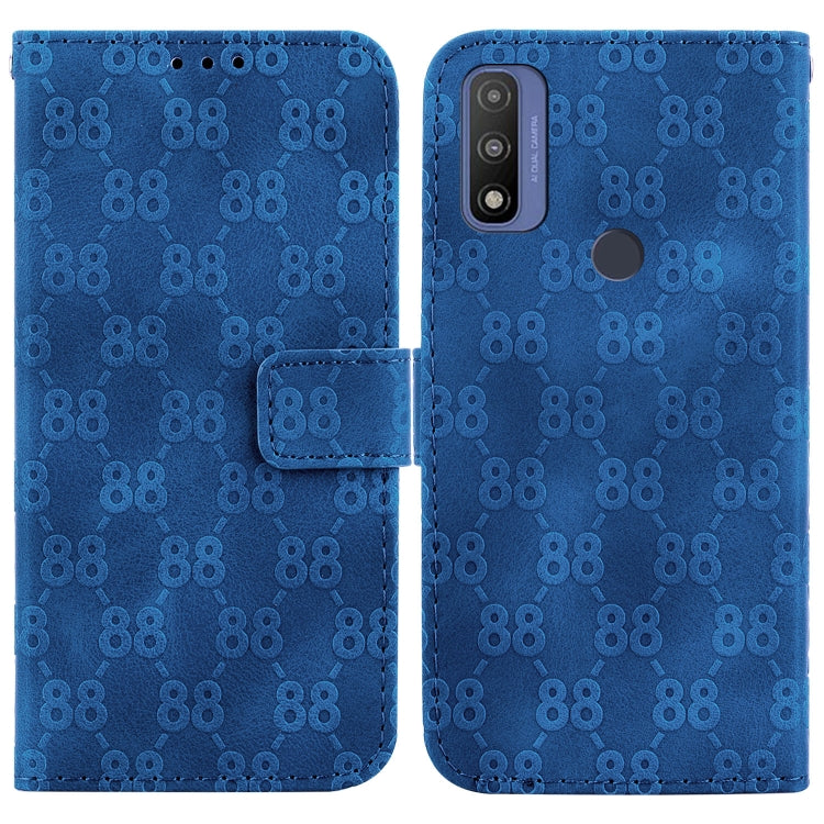 Estuche para Motorola Moto G52 de Cuero En Relieve con Doble Forma de 8 (Azul)