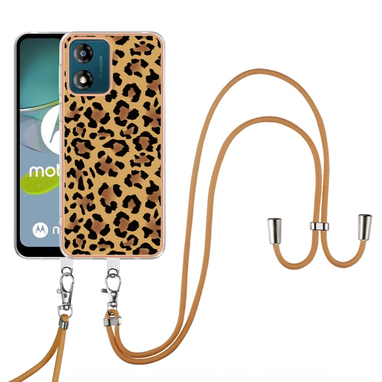 Estuche para Motorola Moto E13 Imd Doble Cara con Galvanoplastia y CordĂłn (Leopardo)