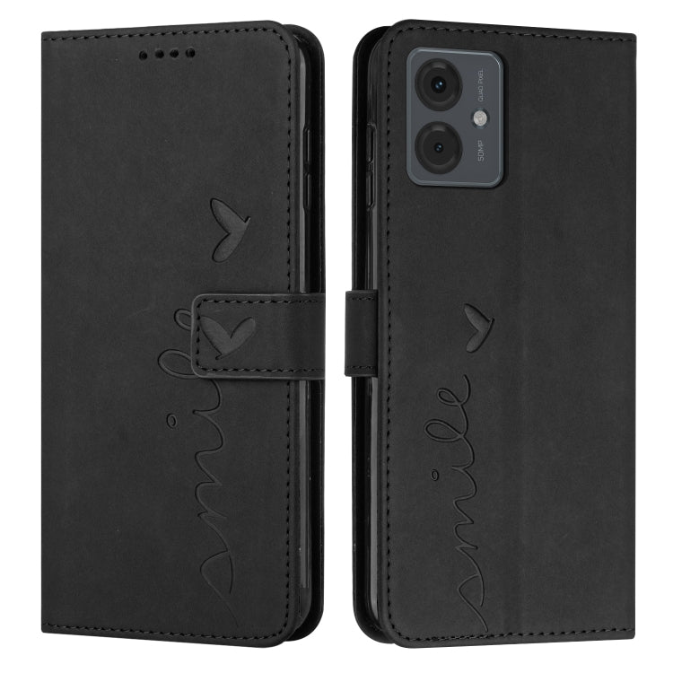 Funda de Cuero para Motorola Moto G14 Skin Feel Heart Pattern (Negro)