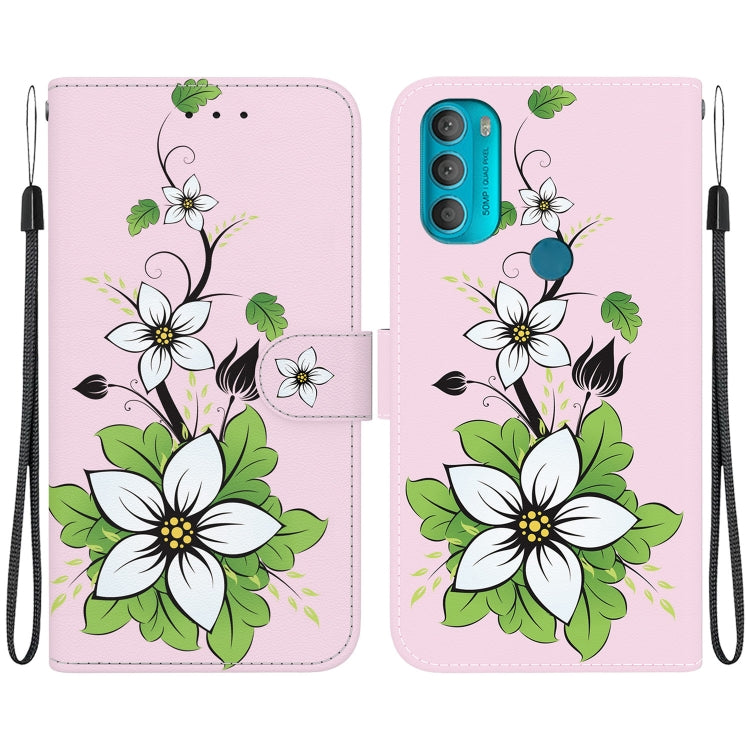 Funda de Cuero para Motorola Moto G60S con Dibujo Coloreado y Textura de Cristal (Lirio)