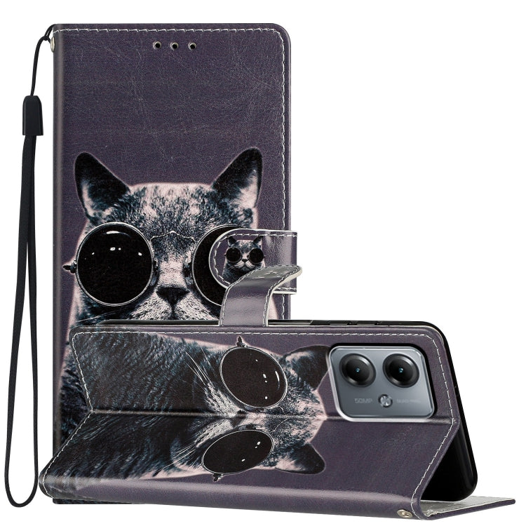 Funda de Cuero para Motorola Moto G14 con Dibujo Coloreado Gato de Gafas de Sol