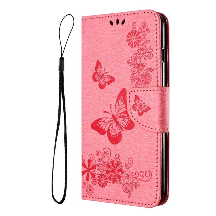 Funda de Cuero para Motorola Moto G54 con Tapa en Relieve de Mariposa (Rosa)