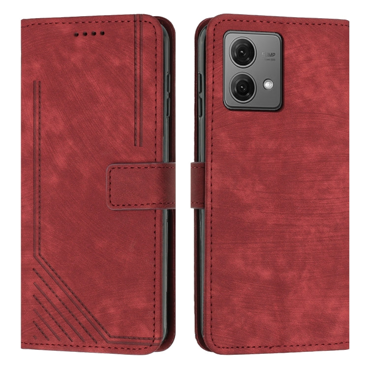 Funda de Cuero para Motorola Moto G84 Skin Feel con Patrón de Rayas y Cordón (Rojo)