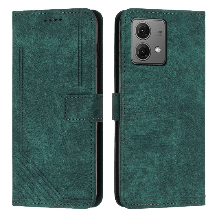 Funda de Cuero para Motorola Moto G84 Skin Feel con Patrón de Rayas y Cordón (Verde)