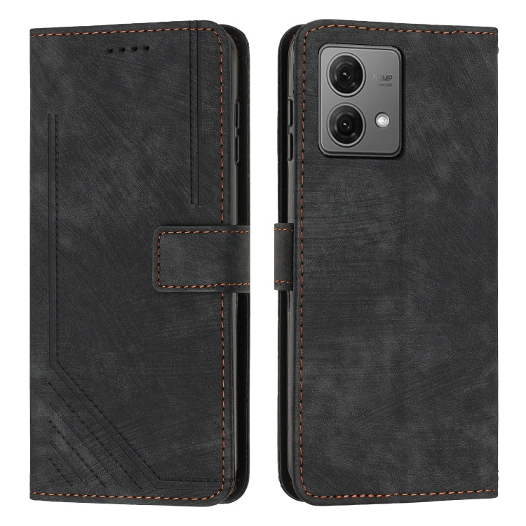 Funda de Cuero para Motorola Moto G84 con Patrón de Rayas y Cordón (Negro)
