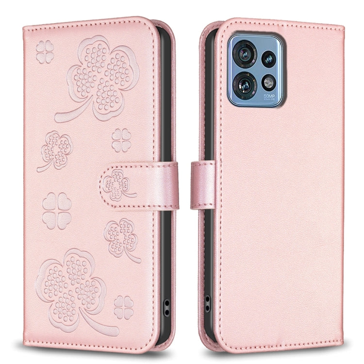 Funda para Motorola Edge 40 Pro 5G X40 X40 Pro Cuero En Relieve Cuatro Hojas (Rosa)