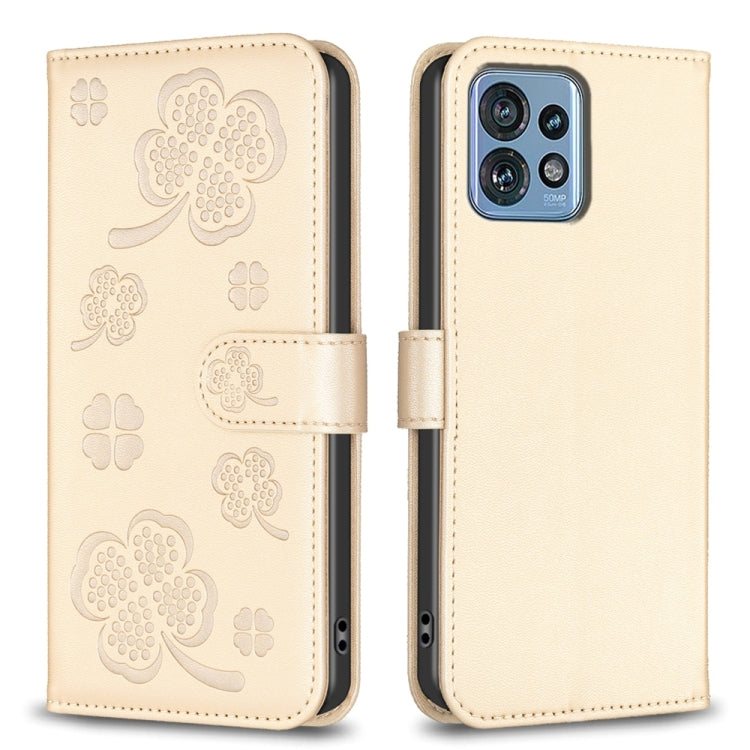 Funda de Cuero Motorola Edge 40 Pro 5G X40 X40 Pro con Relieve de Cuatro Hojas (Dorado)