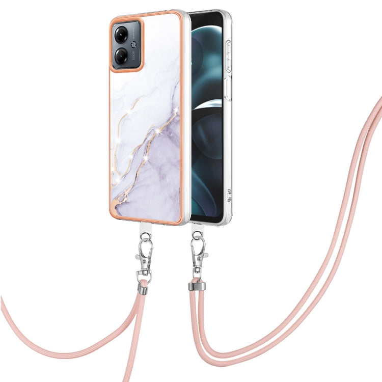 Estuche para Motorola Moto G14 IMD Doble Cara Mármol Galvanizado con Cordón (Blanco)