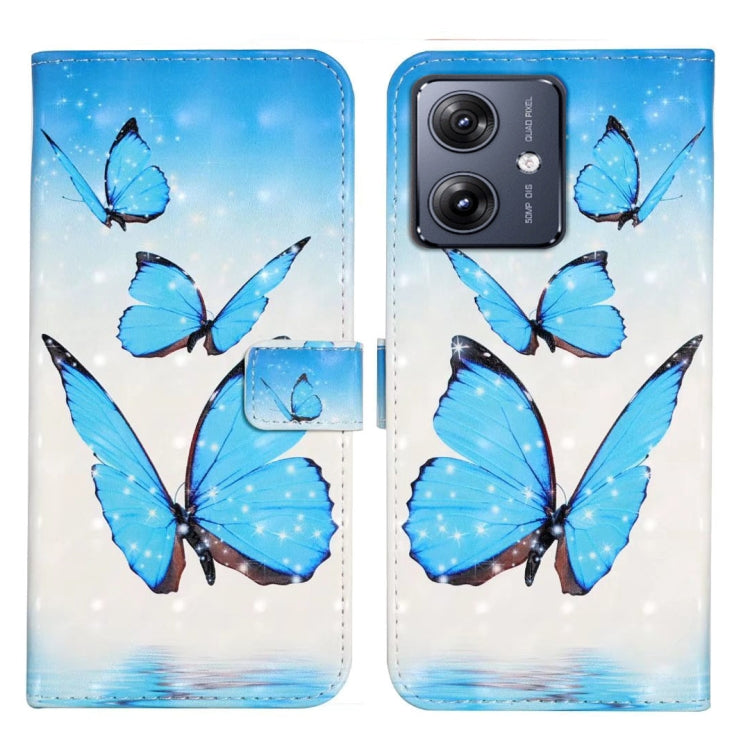 Funda de Cuero para Motorola Moto G14 4G con Dibujo 3D en Relieve al Ăleo (3 Mariposas)