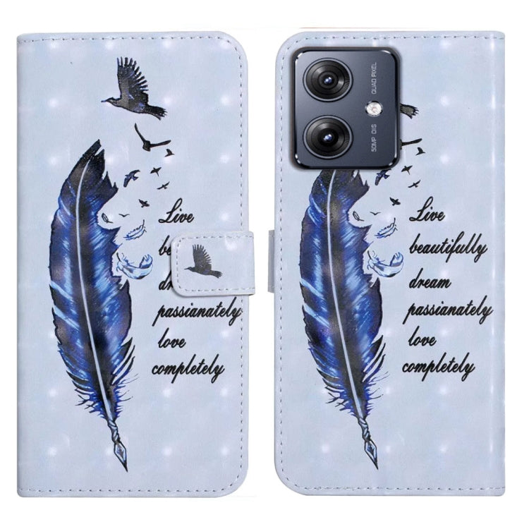 Funda de Cuero para Motorola Moto G54 5G con Dibujo 3D en Relieve (Pluma Azul)