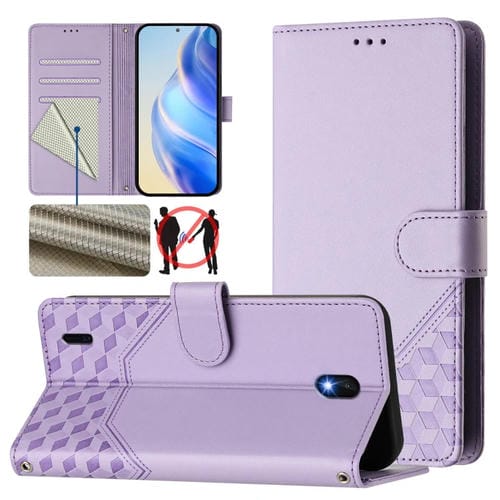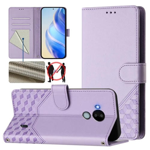 Funda de Cuero Rfid con Relieve en Panal para Nokia G42/G310 (Morado Claro)