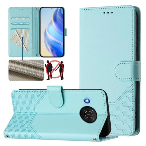 Funda de Cuero Rfid con Relieve en Panal para Nokia G42/G310 (Verde Menta)