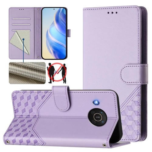 Funda de Cuero Rfid con Relieve en Panal para Nokia X20/X10 (Morado Claro)