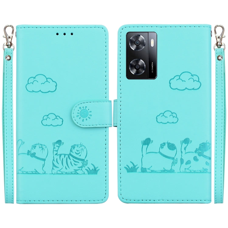 Funda de Cuero Rfid con Diseño de Gatos para OnePlus Nord Ce4 5G (Verde)