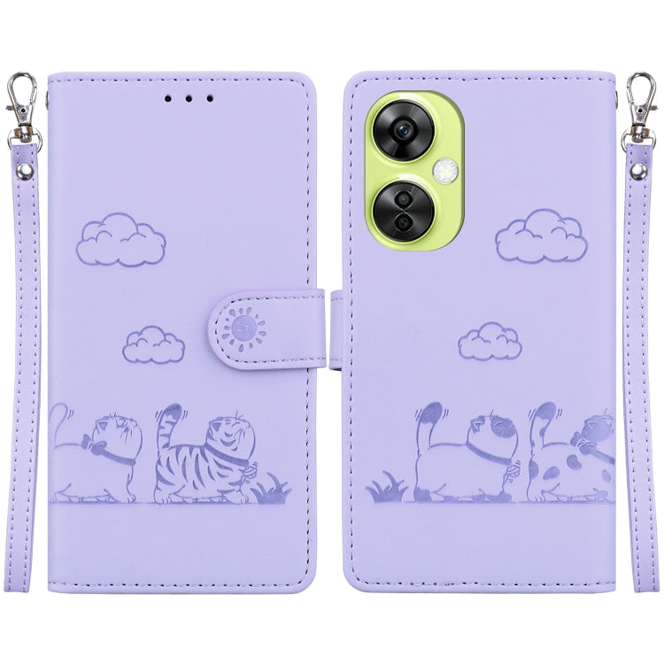 Funda de Cuero Rfid para OnePlus Nord Ce4 5G con Diseño de Gatos (Morado)