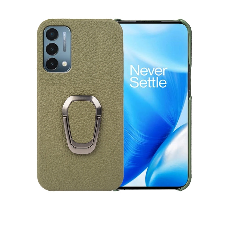 Funda OnePlus Nord N200 5G Cuero Genuino con Ring Holder y Textura Litchi (Verde)