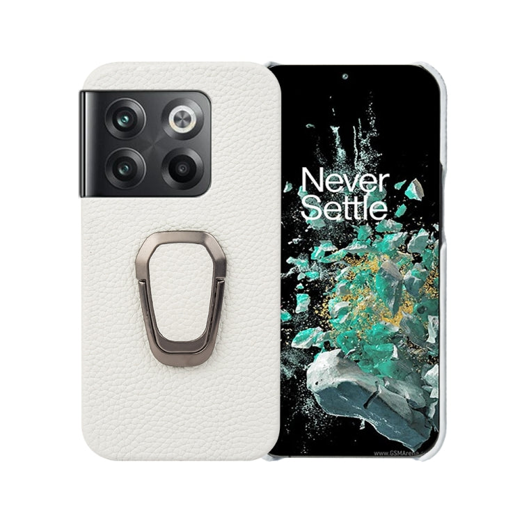 Funda Para OnePlus Ace Pro con Ring Holder y Textura Litchi de Cuero Genuino (Blanco)
