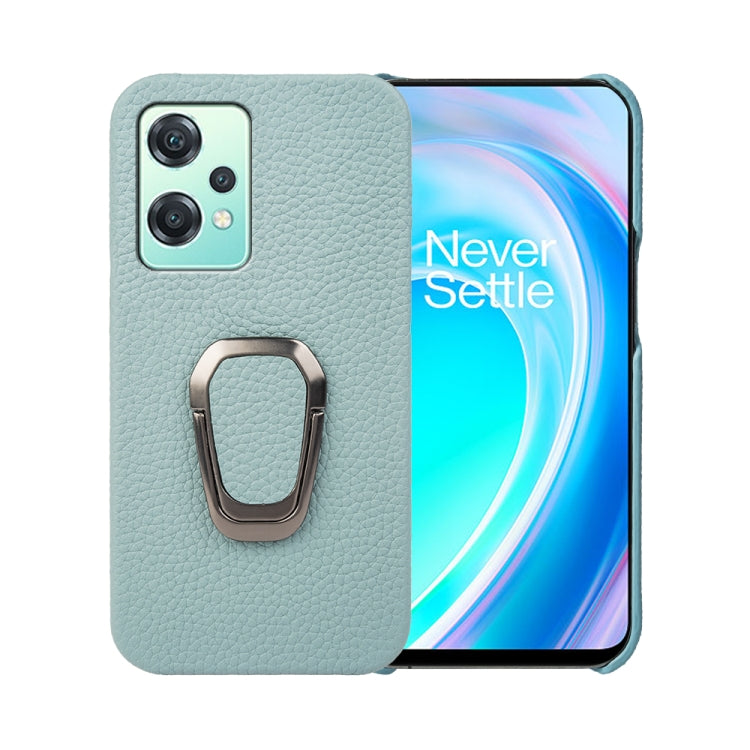 Funda de Cuero Genuino OnePlus Nord Ce 2 Lite 5G con Ring Holder y Textura Litchi (Cian)