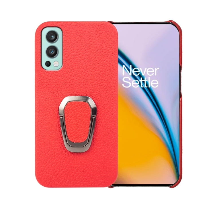 Funda de Teléfono OnePlus Nord 2 5G con Ring Holder y Cuero Genuino (Rojo)