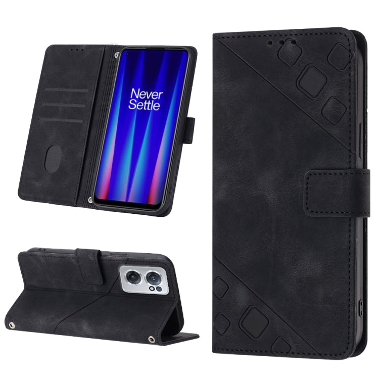 Estuche para OnePlus Nord 2T 5G de Cuero En Relieve con Tacto de Piel (Negro)