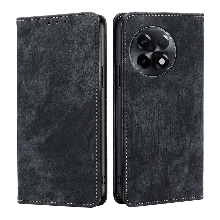 Funda de Cuero Magnética para OnePlus Ace 2 / 11R con Rfid y Cepillo Antirrobo (Negro)