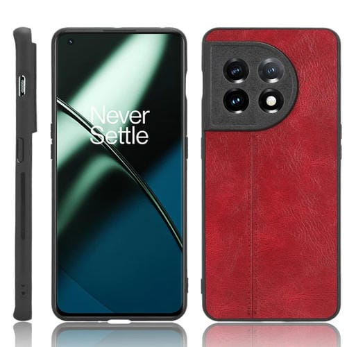 Funda para OnePlus 11 5G Costura PatrĂłn de Vaca Piel PC + PU + TPU (Rojo)