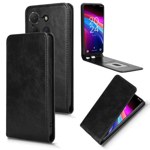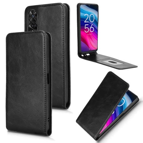 Funda de Cuero con Tapa Vertical Magnética para Teléfono TCL 505 4G (Negro)