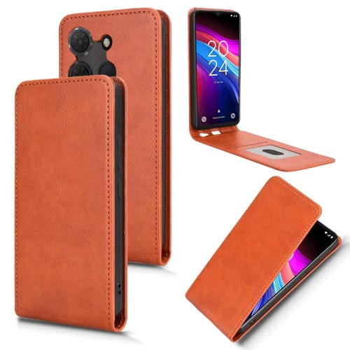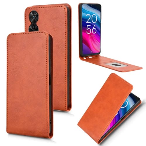 Funda de Cuero con Tapa Vertical Magnética para Teléfono TCL 505 4G (Marrón)