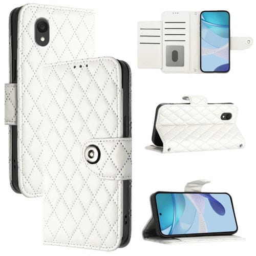 Funda para TCL 40 R 5G de Cuero con Tapa Textura Romboidal y Cordón (Blanco)