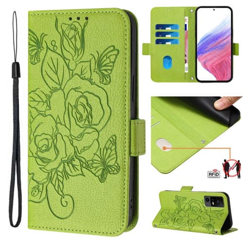 Funda para TCL 30 5G 4G 30+ Cuero Antirrobo RFID con Rosa En Relieve (Rojo)