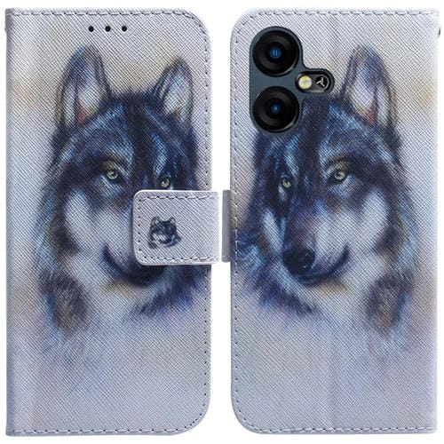 Funda de Cuero con Tapa para Tecno Pova Neo 3 Dibujo Coloreado (Lobo Blanco)