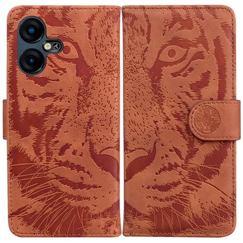 Funda Flip de Cuero para Tecno Pova Neo 3 con PatrĂłn Tiger Embossing (MarrĂłn)