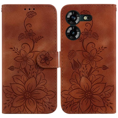 Funda de Cuero en Relieve para Tecno Pova 5 Lily para Teléfono (Marrón)