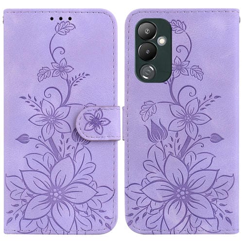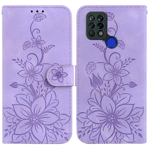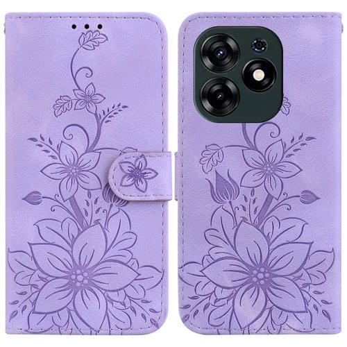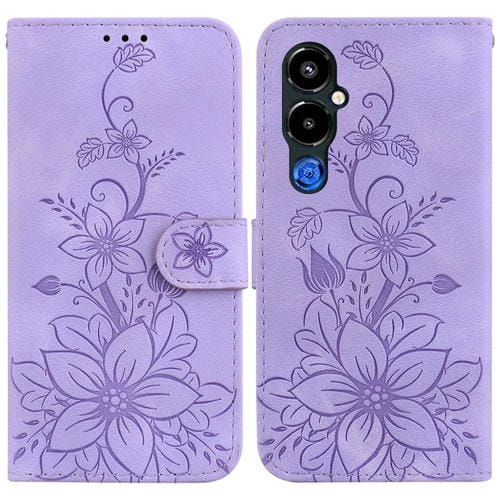 Funda de Cuero en Relieve para Tecno Camon 19 Lily para TelĂ©fono (PĂșrpura)