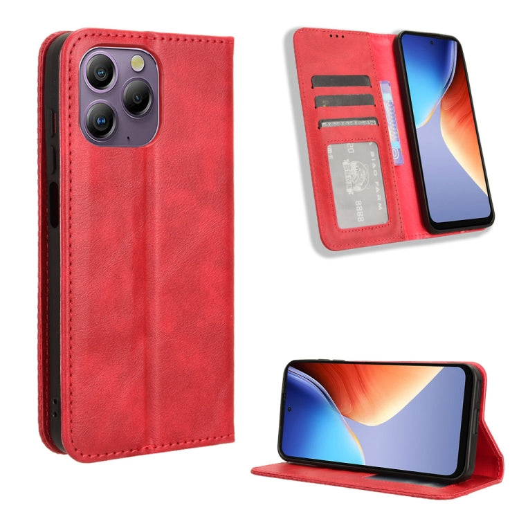 Funda para Teléfono BlackView A96 Cuero Textura Retro con Hebilla Magnética (Rojo)