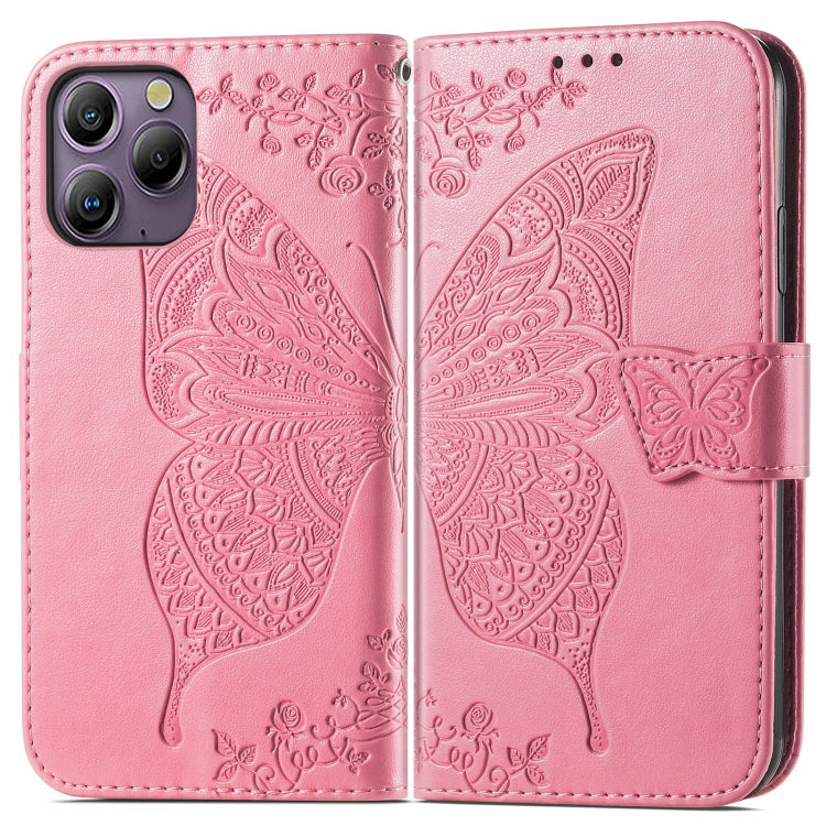 Funda para Teléfono BlackView A96 Cuero con Relieve Flor de Amor y Mariposa (Rosa)