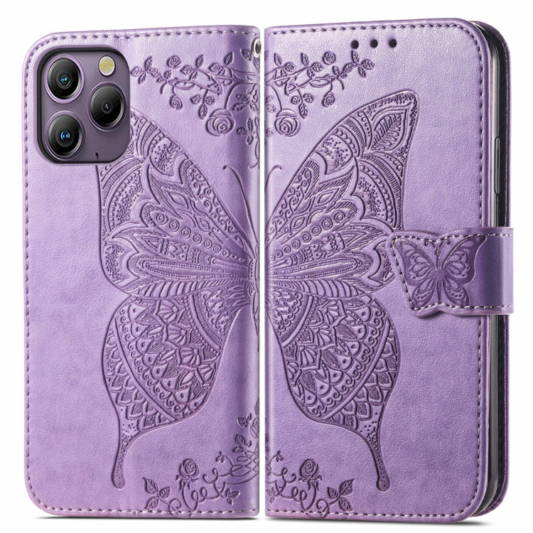 Funda para Teléfono BlackView A96 Cuero con Relieve Flor y Mariposa (Púrpura Claro)