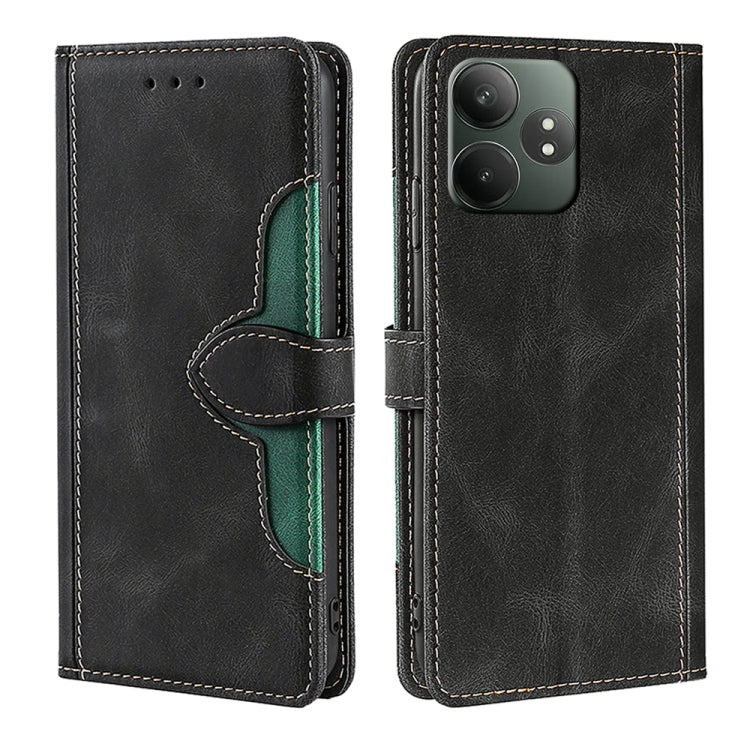 Funda de Cuero con Textura de Piel Sintética para Realme V60 5G (Negra)