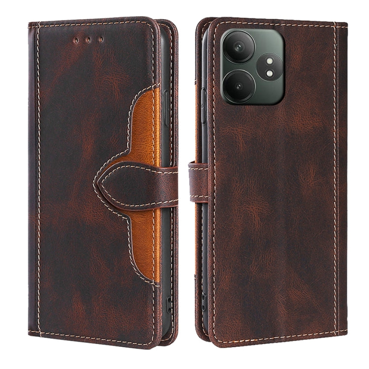 Funda de Cuero con Textura de Piel Sintética para Realme V60 5G (Marrón)