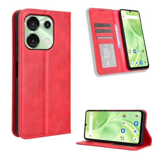 Funda de Cuero Umidigi G9 5G con Textura Retro y Hebilla Magnética (Rojo)