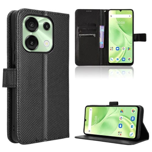 Funda de Cuero para Umidigi G9 5G y Note 90 con Textura de Diamante (Negra)