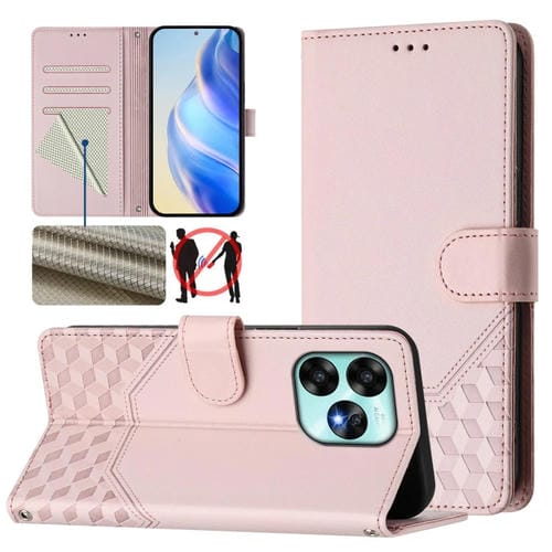 Funda de Cuero Rfid con Relieve en Panal para Umidigi A15 A15C A15T (Rosa)