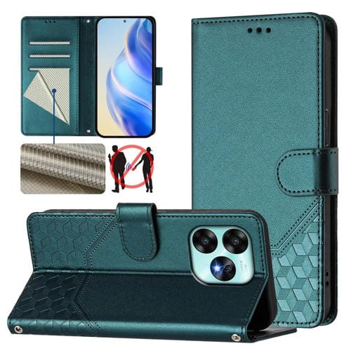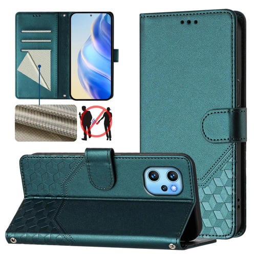Funda de Cuero Rfid con Relieve en Panal para Umidigi A15/A15C/A15T (Verde Pavo Real)