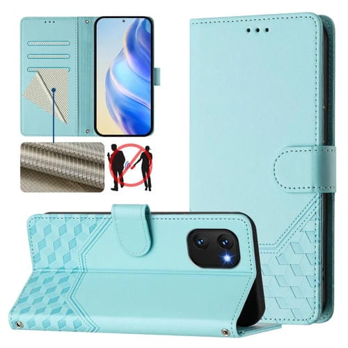 Funda de Cuero Rfid con Relieve en Panal para Umidigi A15 A15C A15T (Verde Menta)